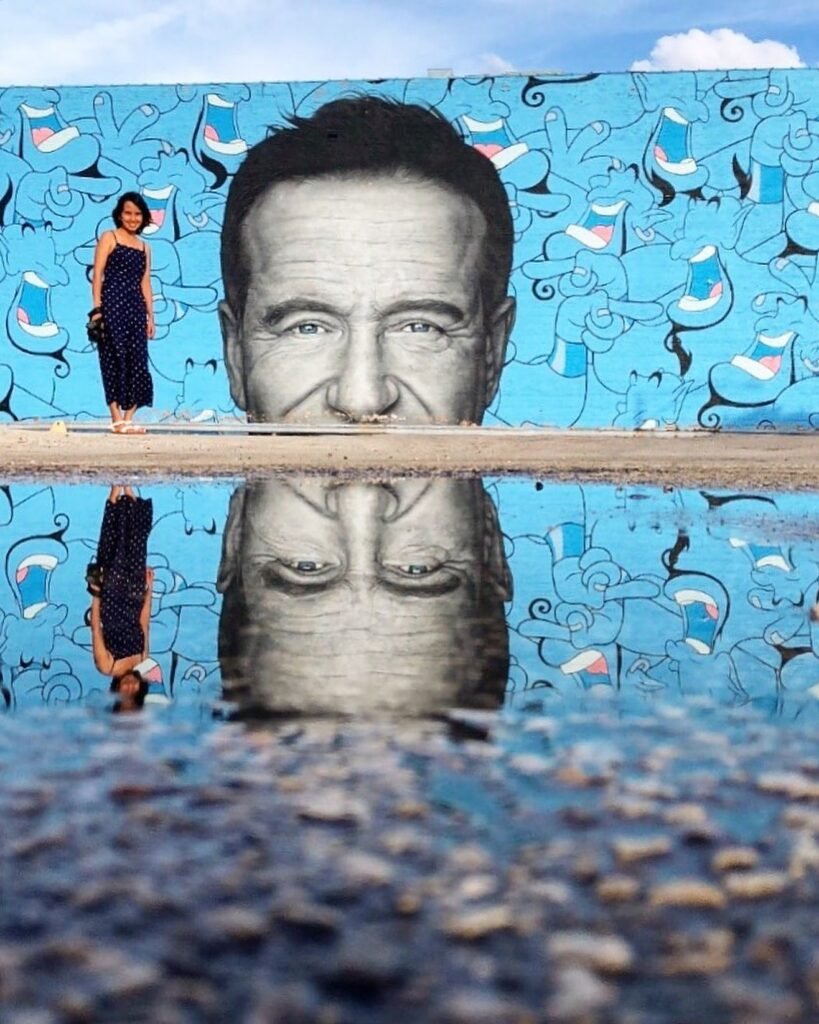 The Robin Williams Mural is one of those walls that makes you stop without meaning to.
