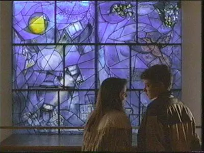 In Ferris Bueller’s Day Off, Ferris and Sloane share a kiss in front of the America Windows. The scene is set in their original location, on the east side of the museum overlooking McKinlock Court. The windows were removed in 2005 to protect them from vibration during construction of the Modern Wing, then deep-cleaned with cotton swabs and water for five years. They were reinstalled in their current location, Gallery 144, in November 2010.